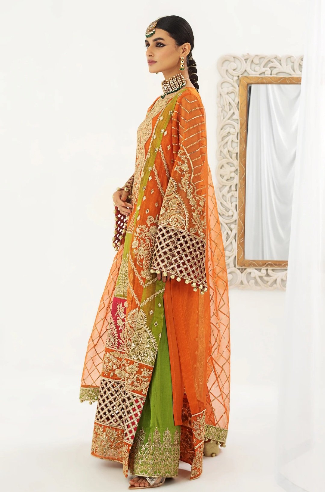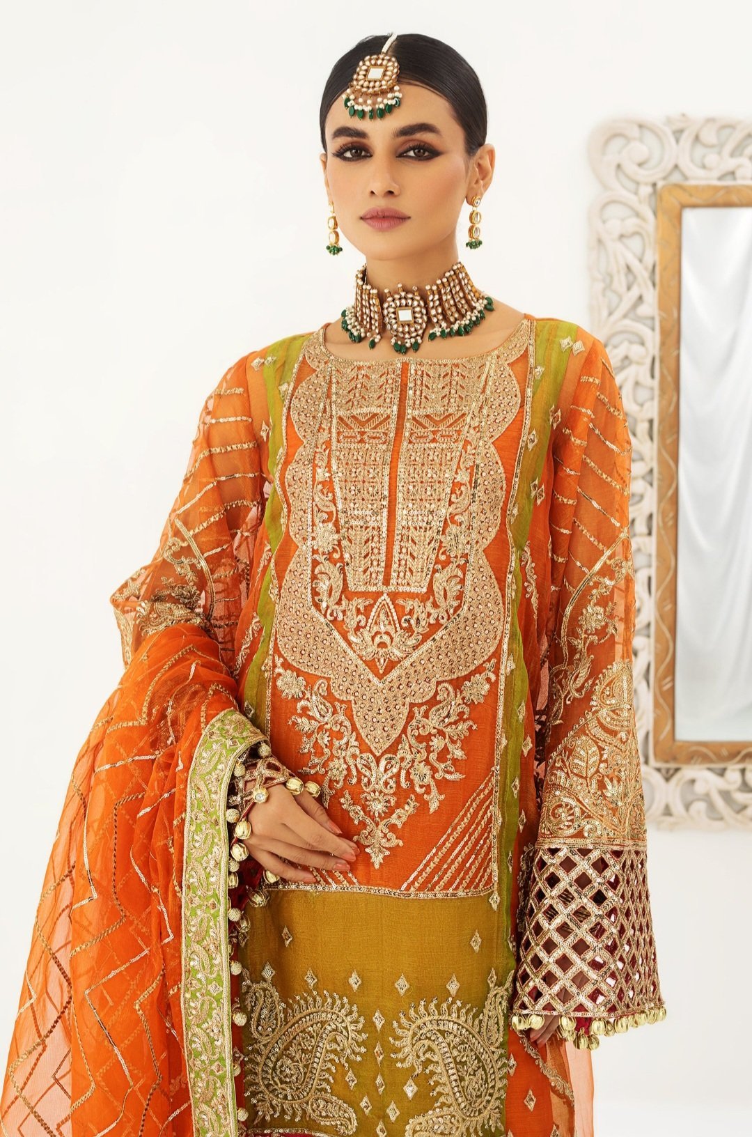 Embroidered Organza Front-Sleeves Patti Patch 2.35Yrd
